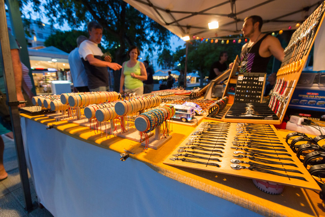 S’hi poden trobar una gran varietat d’objectes fets a mà. Des d’arracades, collarets, figures de fusta a ceràmica. I també podreu fer-vos caricatures, tatuatges i, fins i tot, trenes africanes.