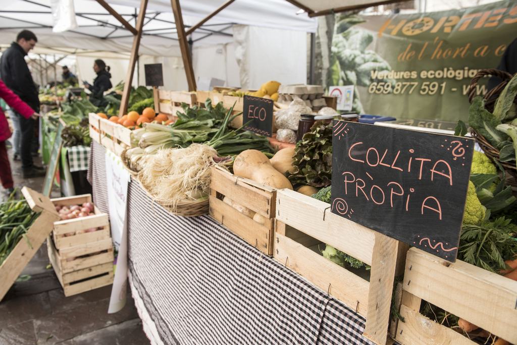 Al mercat hi ha una quinzena de parades, algunes de les quals són compartides entre diferents projectes, de manera que en total hi participen més 25 productors o elaboradors. Al mercat s’hi pot trobar productes d’una quinzena de pagesos, a més de diversos elaboradors de carns i embotits, formatge, oli, conserves, mel i cervesa. Gairebé la meitat de l’oferta és de productes ecològics.
